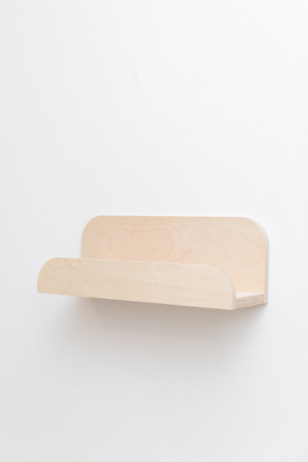 Etagère à livres aux bords arrondis fabriquée à partir de bois de bouleau certifié FCS dans notre atelier dans le sud ouest de la France.