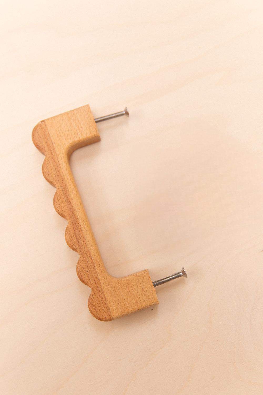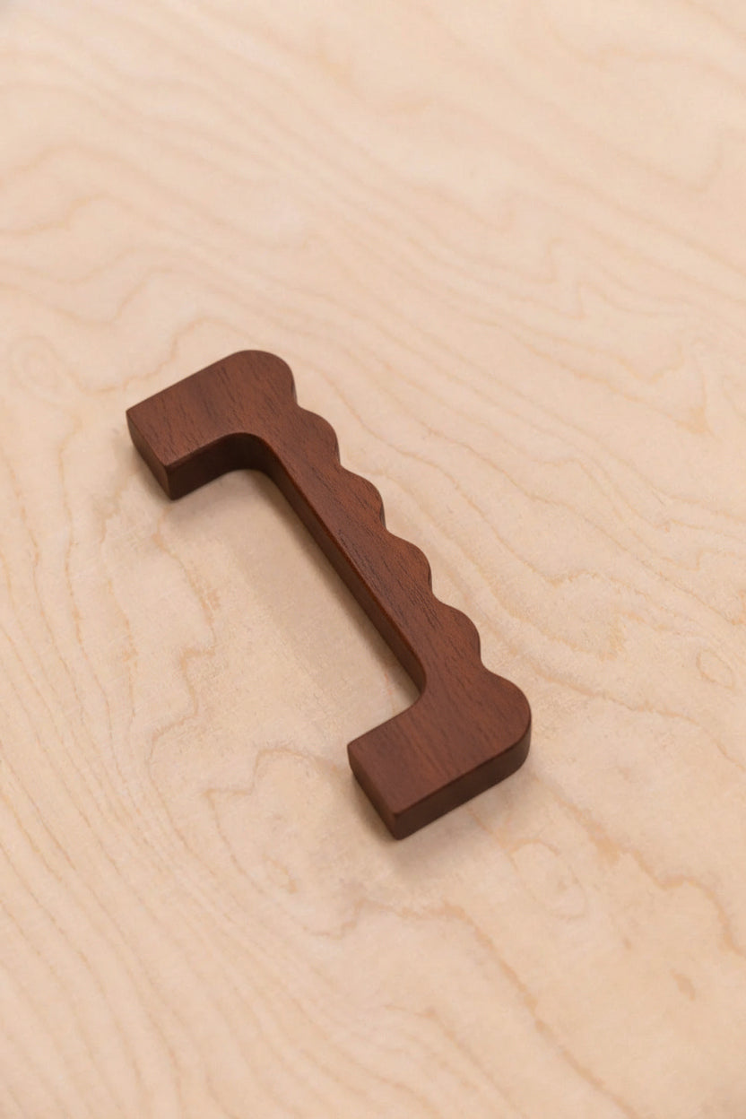 Poignée en hêtre aux courbes ondulées, pour apporter un détail organique et délicat à vos portes de placard ou tiroirs.